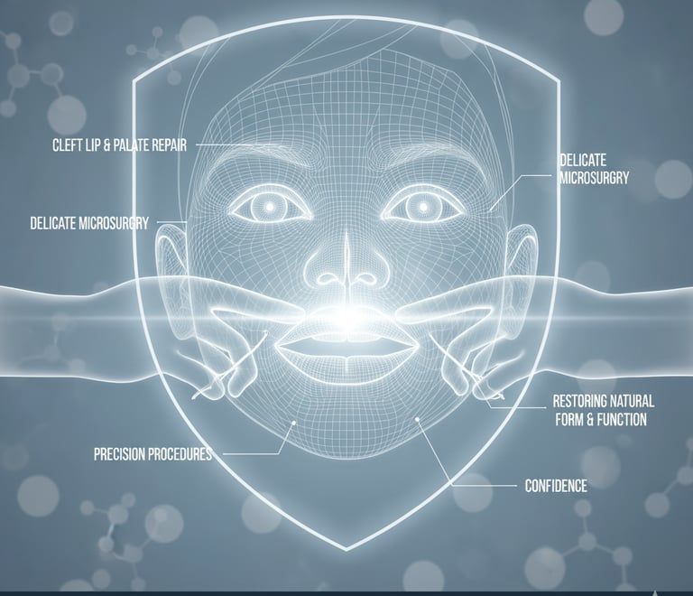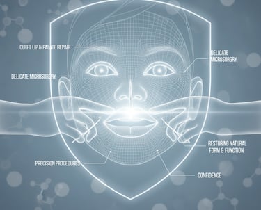 He performs delicate procedures such as cleft lip and palate repair, correction of ear or facial deformities, and treatment of vascular malformations.